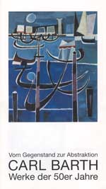 | Carl Barth wird experimentierfreudiger. Der Umgang mit jungen Künstlerkollegen, die Kontakt mit ihm suchen, macht ihn aufgeschlossen für die Tendenzen der zeitgenössischen Malerei. Sicherlich beeinflußt durch die aktuelle Künstlerszene geht Barth Anfang der 50er Jahre in seinem Werk in der Reduktion der Gegenständlichkeit immer weiter voran, bis an die Grenzen der Abstraktion. Ausstellungsbeteiligungen mit Fred Thieler oder Emil Schumacher markieren den äußersten Punkt dieser Entwicklung. Dabei verarbeitet Carl Barth die "informellen" Einflüsse in seinem Werk immer nur in der Innenstruktur seiner Formen, seiner Flächen; in der Komposition bleibt Barth seinem konstruktiven, architektonisch−geometrischen Denken treu. | |