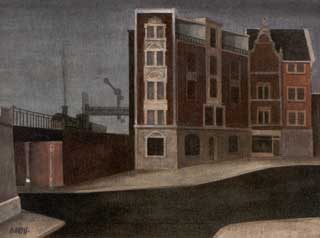 seines Werkes, jene streng gebauten, farblich sparsamen Temperabilder, die der Neuen Sachlichkeit und dem Magischen Realismus zugeordnet werden... In Barths Bildern der beginnenden 30er Jahre scheint sich die Vereinsamung des Menschen angesichts einer kälter und bedrohlicher werdenden gesellschaftlichen Situation auszudrücken. |