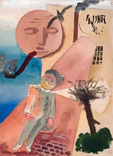 Mit dem Ende des Zweiten Weltkrieges beginnt die Aufarbeitung der Vergangenheit: Trümmer− und Trauerbilder bestimmen die erste Phase (1945/46), Masken- und Puppenbilder, Bilder der Verstellung, Verleugnung, Verwandlung die zweite Phase (1947−49). |