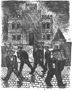 Straßenbau um 1930 Linolschnitt (Kat.−Nr. 5) |