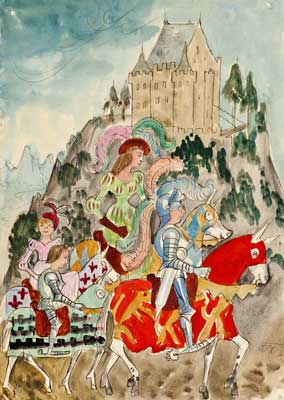 Ritter Hans an Hohenranden und seine Familie hoch zu Roß Bilderbuch für Hana, Blatt 2 (Kat.−Nr. 7/2) |